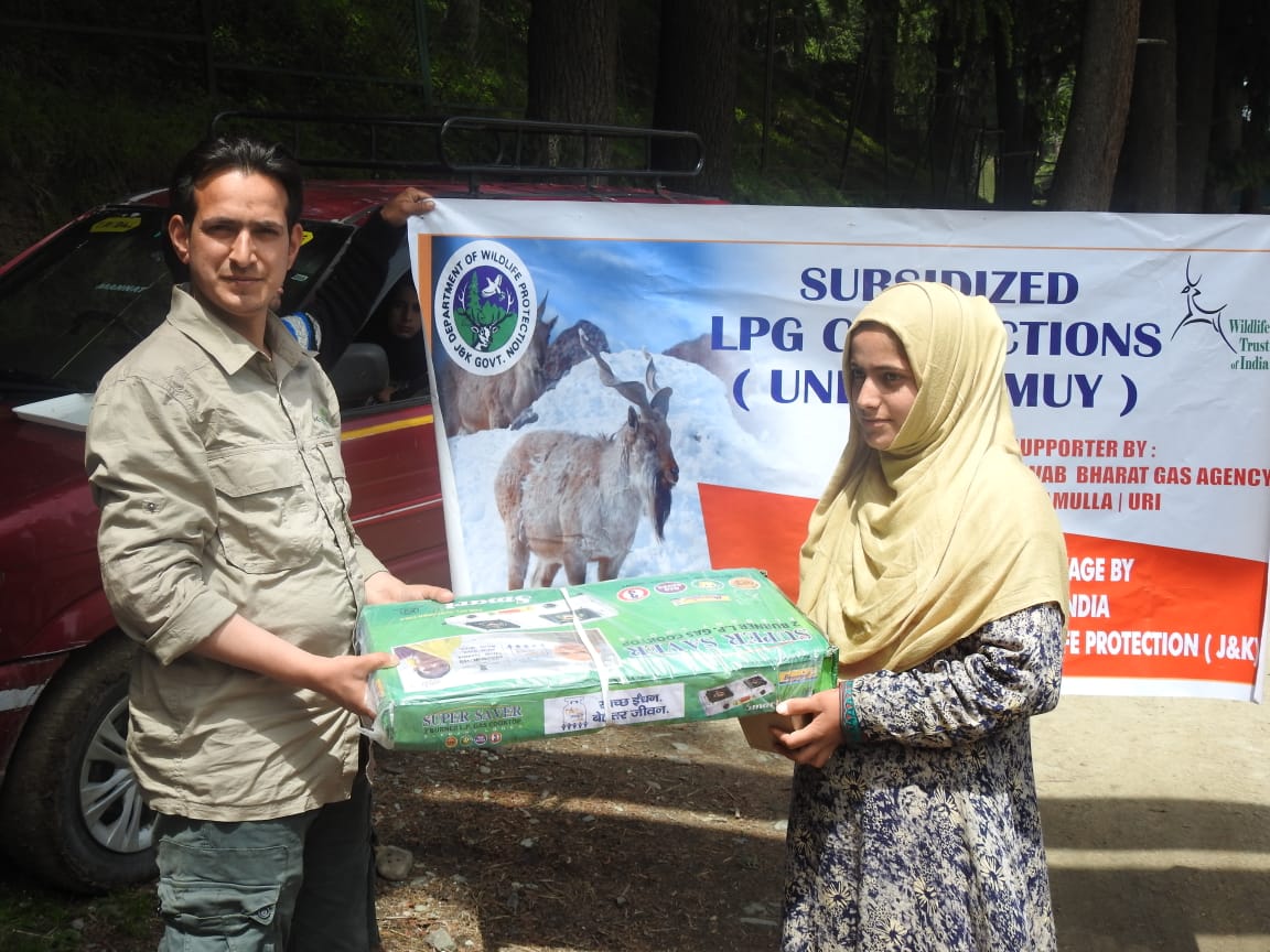 Once we established the possibility of convergence, WTI and the J&K Department of Wildlife Protection initiated the process of linking inhabitants of villages on the fringes of Kazinag National Park under PMUY. Since the extended phase of the scheme had the provision to cover all households falling under the arch of ‘forest dwellers’, WTI joined hands with the Bismillah Nawab Bharat Gas, Baramulla (one of the nodal agency responsible for the distribution of subsidized LPG connections) and ensured that about 781 subsidized connections had been distributed in our project communities. The connections were released in the name of the women member of the family having no previous LPG connection.