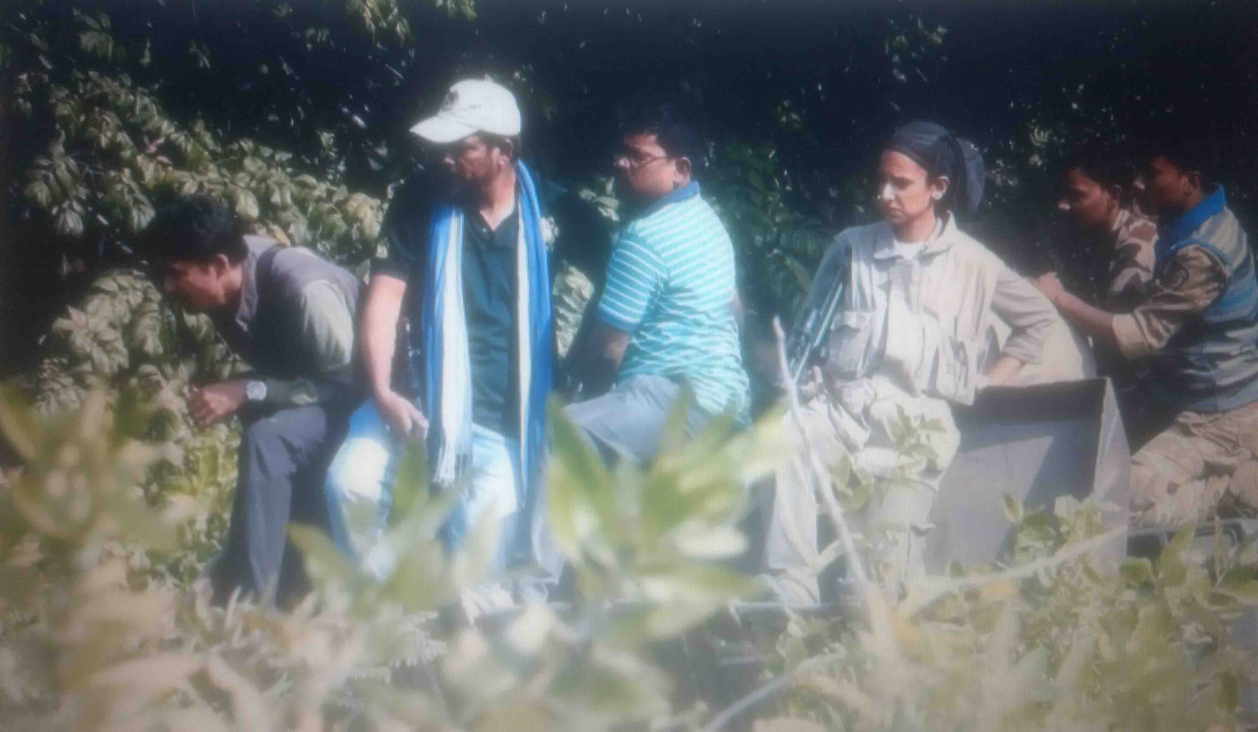 Late in the afternoon, we got information that two women of Sitasaongi had sighted a tiger. We hurried to the spot and cautiously approached the area of the sighting. Fresh pugmarks confirmed that a tiger had indeed been there recently. The teams in the field fanned out to scout for signs of tiger movement. Mr Shahid Khan of Save Environment And Tiger (SEAT) and the Primary Response Team (PRT) they had constituted and trained to handle exactly such situations, also pitched in their support. Mr Khan, along with eight forest guards managed to locate a fresh kill made by a tiger, and despite dusk setting in led Nikhil and me to the spot of the kill so we could install a camera trap to establish the identity of the tiger, should it come back to the kill.