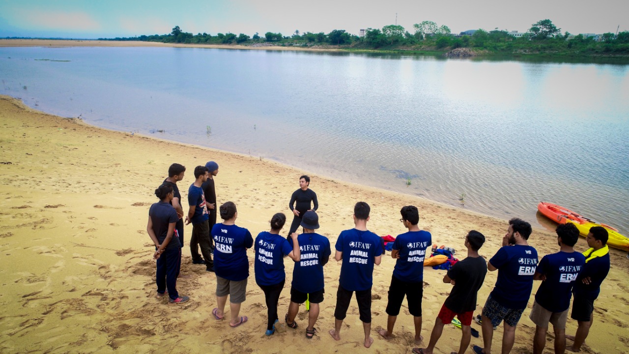 Along with human beings, animals also suffer a lot in times of flood. Saving lives in such a situation becomes critical since the life of the saviour is also at stake in the high level of water during the time of the flood. Intending to extend support in the time of such natural calamities, Wildlife Trust of India (WTI), in collaboration with International Fund for Animal Welfare (IFAW), has established an active Emergency Relief Network (popularly known as ERN). The network constitutes a team of dedicated volunteers, trained with the advanced skills and techniques to rescue wildlife in the time of flood and cyclone. The team is also equipped with modern and technically upgraded equipment for the rescue with all the safety measures for both the rescuer and the rescued. Rescuing animals from flooded / water-logged areas being risky, this requires extensive training for the ERN members. In this context, IFAW-WTI, during a camp organized by Odisha Maritime Adventures, arranged flood-preparedness training on 16th June 2019. The River Mahanadi was selected for the workshop since this river is notorious for causing widespread displacement of people and animals settled in the floodplains of the river.