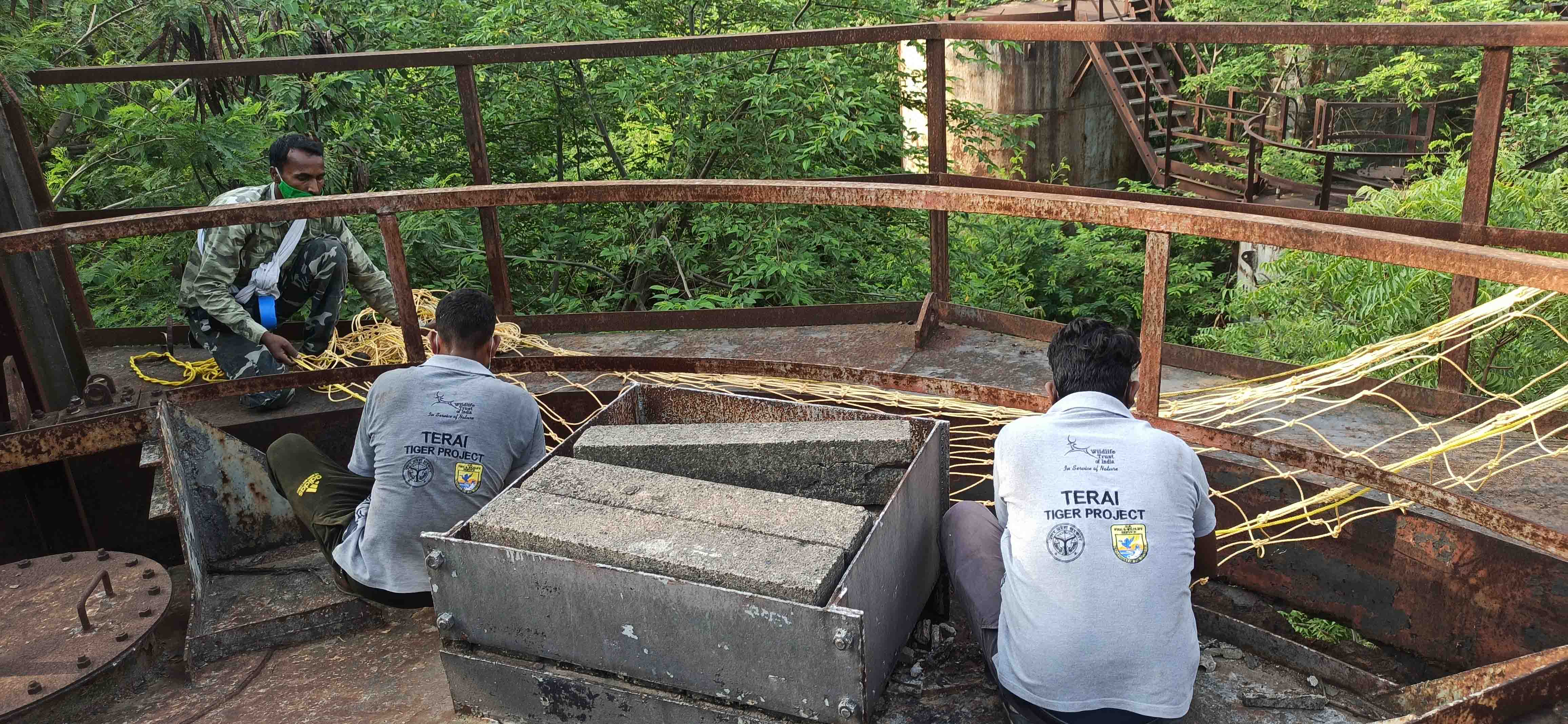 The next few hours went by in a frenzy of action in total silence. Heavy gauge nets blocked the entrance, and Palu our scout climbed atop the tank to double check if the tigress was indeed inside. Palu’s excited look was enough to indicate that she indeed was inside. Once confirmed, a cage was setup at the entrance to try to lure her into it to avoid chemically sedating her. But the effort was in vain, and the next day a massive tranquilisation operation was launched. Dr. Daksh Gangwar, WTI’s former team member, now a veterinarian with the Pilibhit Tiger Reserve, successfully sedated her, and an earthmover which had been brought in earlier in the day, was deployed to tear open the rusty wall of the tank. She was swiftly put in a transportation crate and taken to Dudhwa Tiger Reserve as per the directives of senior Forest Department officials, where she was successfully released back into the wild.