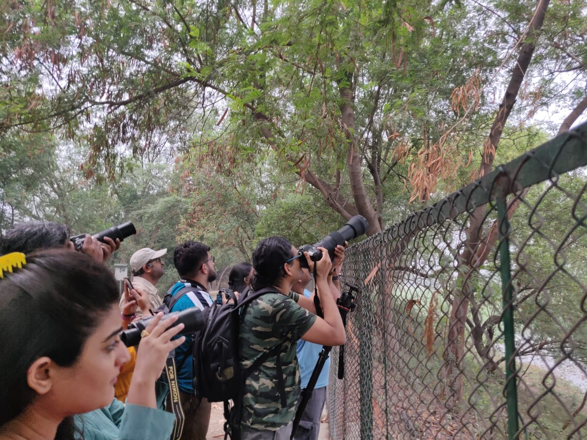 Notified as a sanctuary in 1990, Okhla Bird Sanctuary is roughly four sq km in size and is one among 15 bird sanctuaries in Uttar Pradesh. Its unique positioning attributes to the presence of bird species of thorny scrub, grassland and wetland, making it as one out if the 466 IBAs (Important Bird Areas) in India. The team spotted several species of birds during the bird walk – Painted stork, grey hornbill, oriental magpie robin, spot-billed duck, pheasant tailed jacana, yellow bittern, black bittern, streaked weaver, purple moorhen, red-whiskered bulbul, yellow-bellied prinia, red wattled lapwing, green bee-eater are to name a few birds seen by the team.
