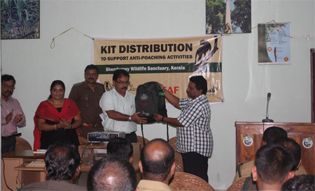 Shendurney Wildlife Sanctuary, June 6, 2014: To augment anti-poaching work in Shendurney Wildlife Sanctuary, Kerala, Wildlife Trust of India (WTI), through a Rapid Action Project (RAP) supported by CAF India and Lightorati, provided 61 field kits as well as four tents for the forest staff and anti-poaching watchers of the Wildlife Sanctuary.