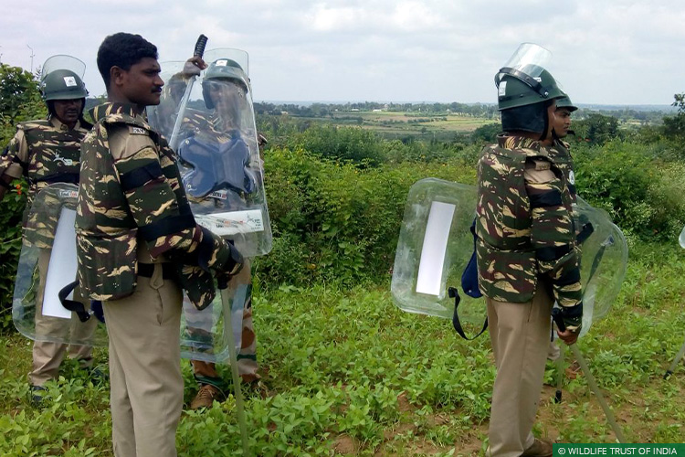 Members of the Karnataka Special Tiger Protection Force (STPF) in conflict mitigation gear donated by WTI and Aircel