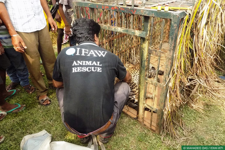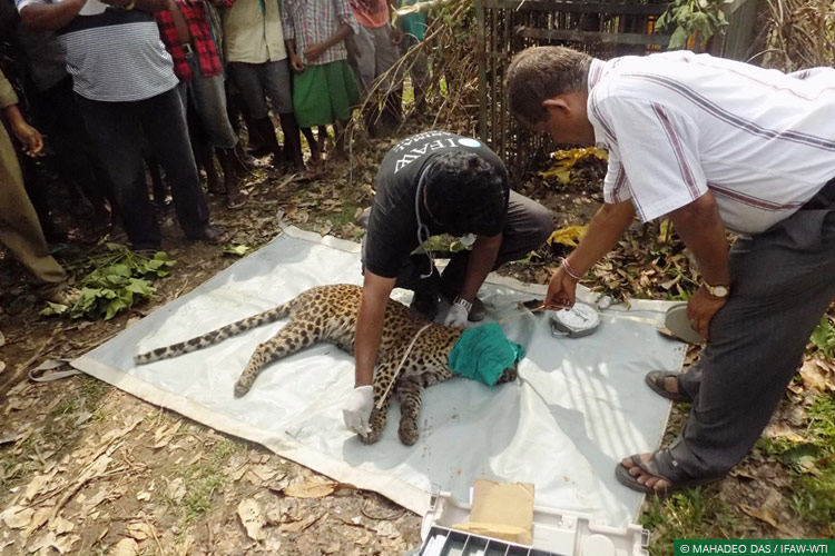 Jorhat, Assam, August 07, 2017: A Mobile Veterinary Service (MVS) team from IFAW-WTI’s Centre for Wildlife Rehabilitation and Conservation (CWRC) recently attended to a sub-adult male leopard that had been caught in a trap cage set by the Assam Forest Department in Hunwal Tea Estate, close to Gibbon Wildlife Sanctuary.