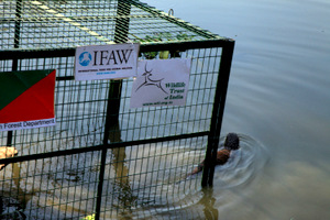 IFAW-WTI team monitoring the otter before the release.