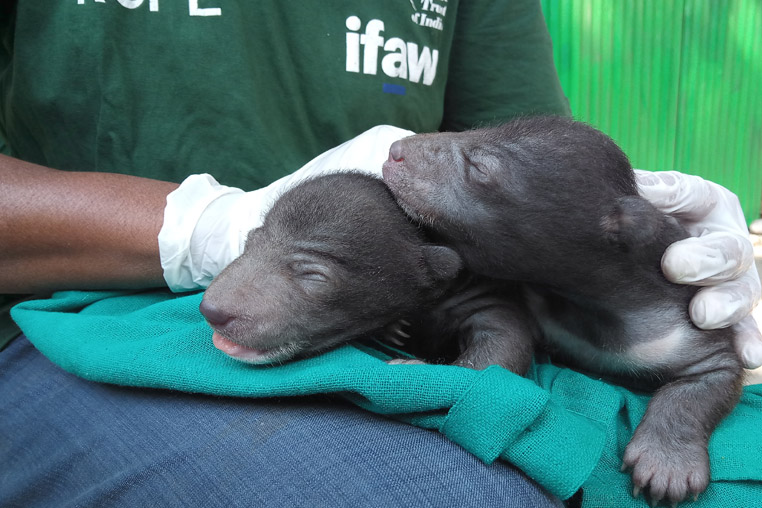 Tiny enough to remain unseen, it was their soft cries that had drawn some women to the cubs. They picked up the babies, setting aside the fuel wood they were collecting, and informed the forest department without delay. The team from the Centre for Bear Rehabilitation and Conservation (CBRC) was called upon and this was the start of yet another hand raising and rehabilitation.
