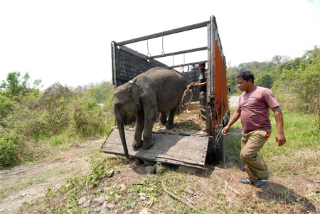 Manas (Bodoland, Assam), April 11, 2014: Four orphaned Asian elephant calves were moved to Manas National Park this week by the Assam Forest Department and International Fund for Animal Welfare – Wildlife Trust of India (IFAW-WTI). The elephants will be gradually reintegrated to the wild.