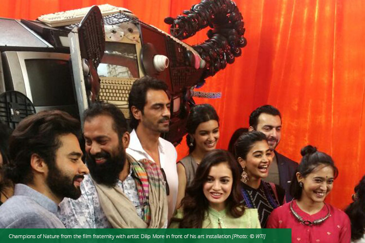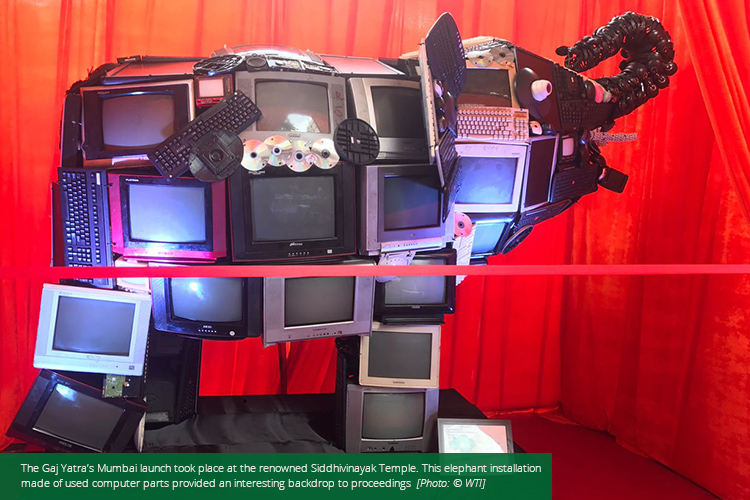 Shri Suresh Prabhu, Mr Vivek Menon and Ms Dia Mirza formally launched the Gaj Yatra with the unveiling of an elephant art installation made up of used consumer electronics components, created by artist Dilip More and curated by Dr Alka Pande.