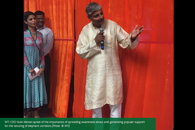 The Gaj Yatra launch ceremony commenced with WTI CEO Mr Vivek Menon speaking about the Right of Passage project and the urgent need to secure elephant corridors. “That we launch the Gaj Yatra from this venue”, he said furthermore, “is especially fitting. Not only because it is extremely auspicious, but because India has shown something of a divided soul when it comes to its elephants. We worship them and proclaim them our National Heritage Animal on the one hand, yet destroy their wild habitats on the other, imperilling their very survival. It is heartening as a conservationist to see so many political, corporate, social and cultural influencers come together and pledge their support for elephants and elephant corridors. I hope that as the Gaj Yatra rolls along over the next 15 months, taking the Gajah to the Prajah, it will inspire involvement and action from the public and policymakers, and help mobilise resources to conserve elephants and give them Right of Passage.”