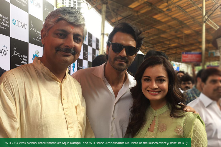 Mumbai, August 13, 2017: Leading wildlife conservation NGO Wildlife Trust of India (WTI) announced the Mumbai launch of the Gaj Yatra, a campaign that aims to raise awareness about the shrinking space for India’s wild elephants and the importance of securing elephant corridors. The campaign was launched at the revered Shri Siddhivinayak Temple in Prabhadevi by the Union Minister for Railways Shri Suresh Prabhu, WTI Executive Director & CEO Mr Vivek Menon, and actor, filmmaker, humanitarian and WTI Brand Ambassador Ms Dia Mirza this morning.