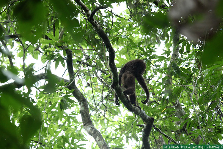 With Mukut Das, Assistant Conservator of Forests (Kaziranga National Park) looking on, the CWRC team opened the gates to both enclosures early yesterday morning. ‘Karbi’ emerged within half a minute and while ‘Makumi’ was more tentative, she too exited her enclosure a few minutes later. The gibbons spent some time near the enclosures, grooming themselves and experiencing their first heavy rain shower as free apes. They then brachiated into the forest.