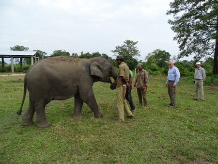 The mahouts interacting with Dr Andrew McLean in the Bansbari Range of Manas NP.