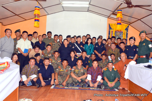 Gelephu, June 19, 2015: A series of four workshops on countering wildlife trafficking at the Indo-Bhutan border were conducted by IFAW-WTI in Bhutan last week by a joint team of experts from India and Bhutan. The workshops were conducted in the border towns of Gelephu, Samste, Phunstholing and Samdrupjongkhar from June 13 to June 19. Selected representatives from Bhutan attended the workshop, including 129 enforcement officials from various enforcement agencies. Personnel from Army, Police, Customs, Bhutan Agriculture and Food Regulatory Authority and Forest Department participated in these workshops. The day-long workshop is part of IFAW-WTI’s ongoing wildlife crime control efforts in association with Bhutan’s Department of Forests and Park Services which kick started in 2011.
