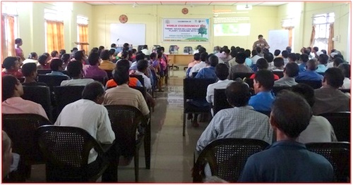 Kaziranga, June 5, 2015: On World Environment Day, IFAW-WTI team was invited to showcase its various activities and to deliver a technical session on the theme of this year — ‘Seven Billion Dreams, One Planet. Consume with Care.’ The programme was organised by the Krishi Vigyan Kendra (KVK), Chirang, at their campus in Kajalgaon, Assam.