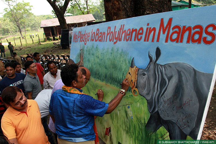 The opening day event saw a footfall of 550 to 600 people. Attendees comprised tourists, press, the Park Director, senior forest officials and local communities living around the park. A large canvas with a rhino was put up on location to collect signatures of people who pledged to keep plastics out of the park.