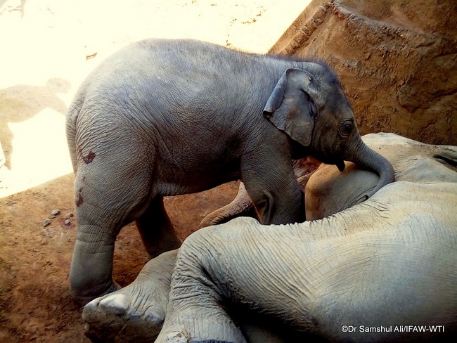 CWRC, Kaziranga National Park, November 25, 2016: A male elephant calf, about three to four months old, was rescued by an IFAW-WTI Mobile Veterinary Service (MVS) team after it and its mother had fallen into a newly dug construction ditch at the Assam Industrial Development Complex (AIDC) in Ghoramari-Balipara on November 23. Personnel from the Assam Forest Department and volunteers at the scene assisted in the rescue.