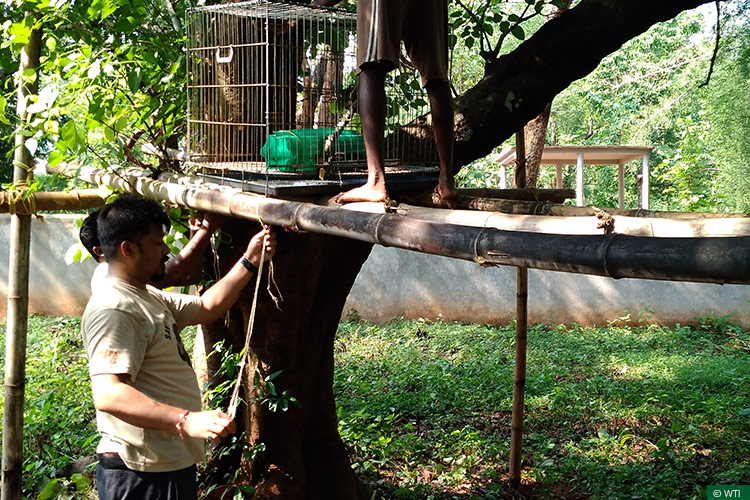 Since all six civets housed at the MVS-SBR field station were over three months old, they were checked for injuries, weighed, sexed and taken to a pre-selected release site for acclimatisation. They were kept in two cages measuring 4x3x3 feet that were placed on trees about five feet above the ground. During the acclimatisation process they were provided naturally occurring fruits such as plums, mangoes and ficus sp. berries to help them become self-sufficient after they were released.