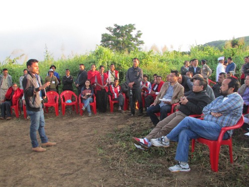 Wokha District, Nagaland, November 8, 2014: The Nagaland Chief Minister TR Zeliang today asked State Forest Department, Tourism Department and WTI to make a comprehensive conservation action plan to save the Amur falcons and to declare the area as a tourist hot spot. Addressing the crowds at the Amur falcons roosting site, the CM appreciated the conservation efforts of WTI, State Forest Department, Village Councils and the villagers for protecting this magnificent raptor. Along with the CM, the Home Minister, Y Patton, also acknowledged the role of WTI, Pangti Council and Forest Department in stopping the killings of the Amur falcons that congregate in the state in large numbers.