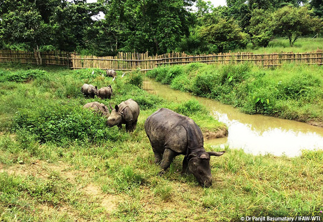 IFAW-WTI has been working to help rhinos in Assam for over 15 years. Our MVS units have attended over 60 rhino-related emergencies in all, and through CWRC we have managed to release 10 rescued rhinos (eight in Manas and two in Kaziranga) after long term hand-raising. The first three rhinos that we released into Manas were females and they have all given birth to calves in the wild on multiple occasions, thus augmenting the rhino population of this once beleaguered UNESCO World Heritage Site.