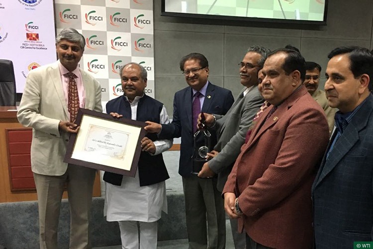 Mr Dinesh K Sarraf, Chairman and Managing Director, ONGC; Mr DD Misra, Director (HR), ONGC; and Mr Vivek Menon, Executive Director and CEO, Wildlife Trust of India received the award from Shri Narendra Singh Tomar, Minister for Rural Development, Panchayati Raj, Drinking Water and Sanitation, Government of India, and Smt Rajshree Birla, Chairperson of FICCI’s CSR and Community Development Committee.