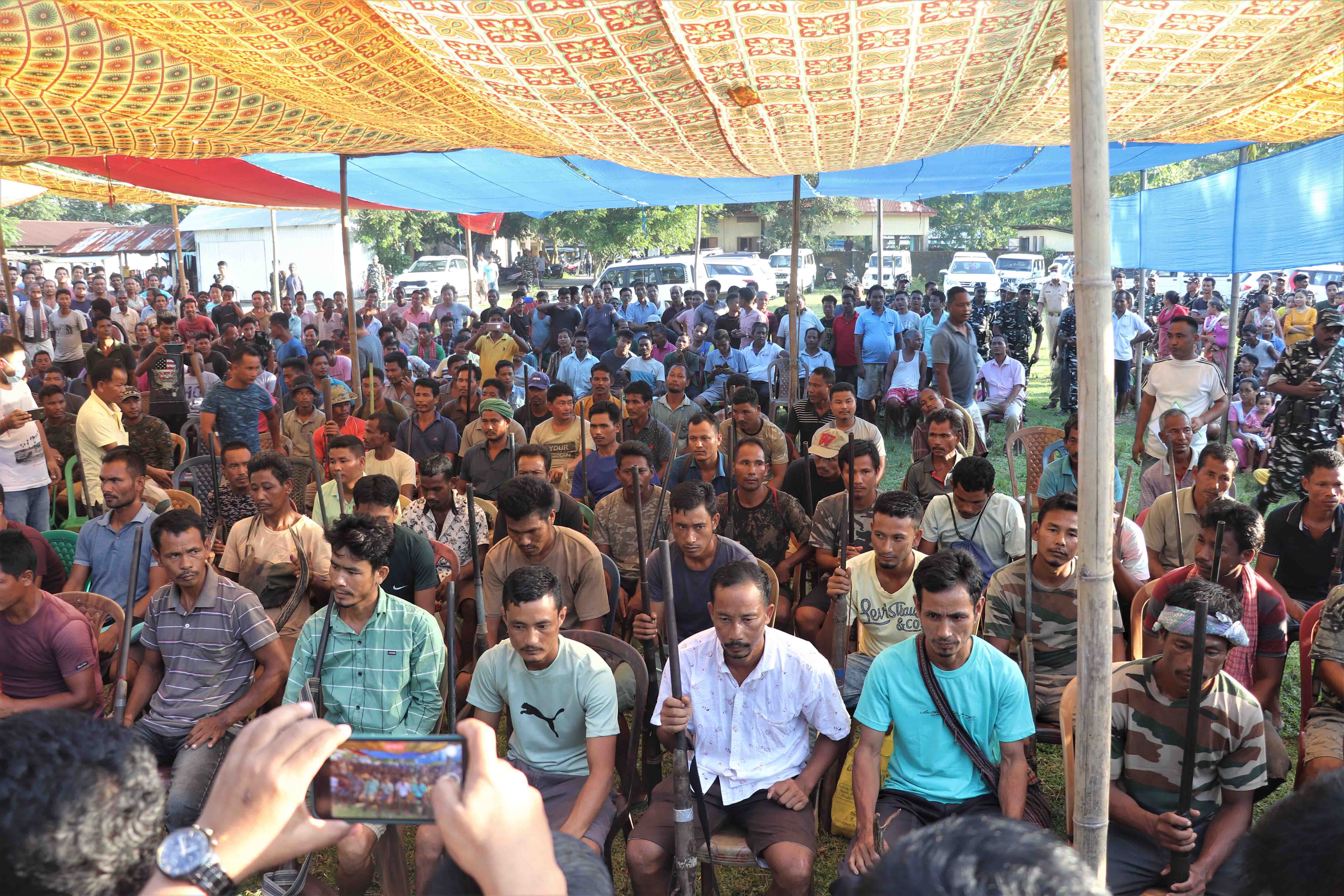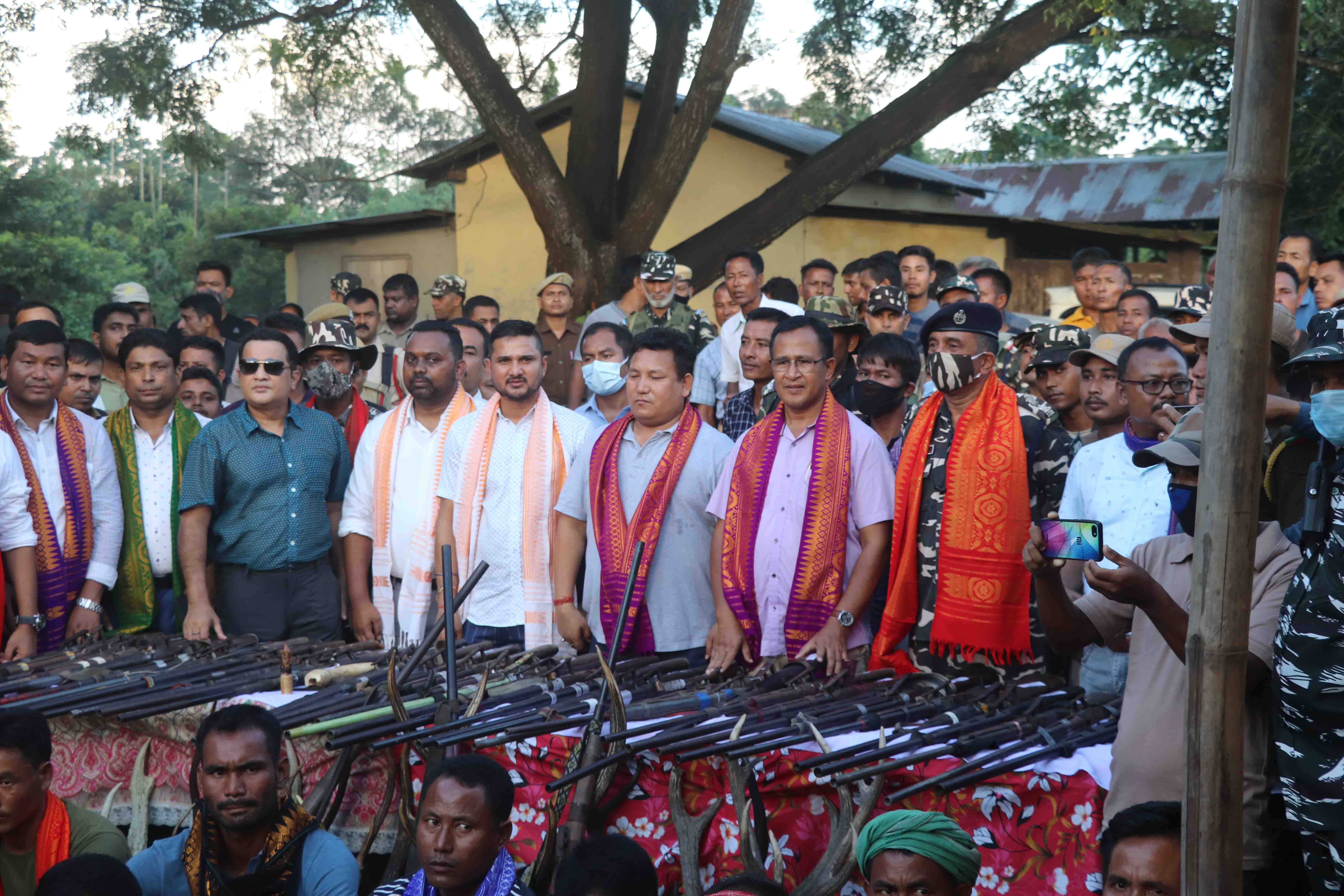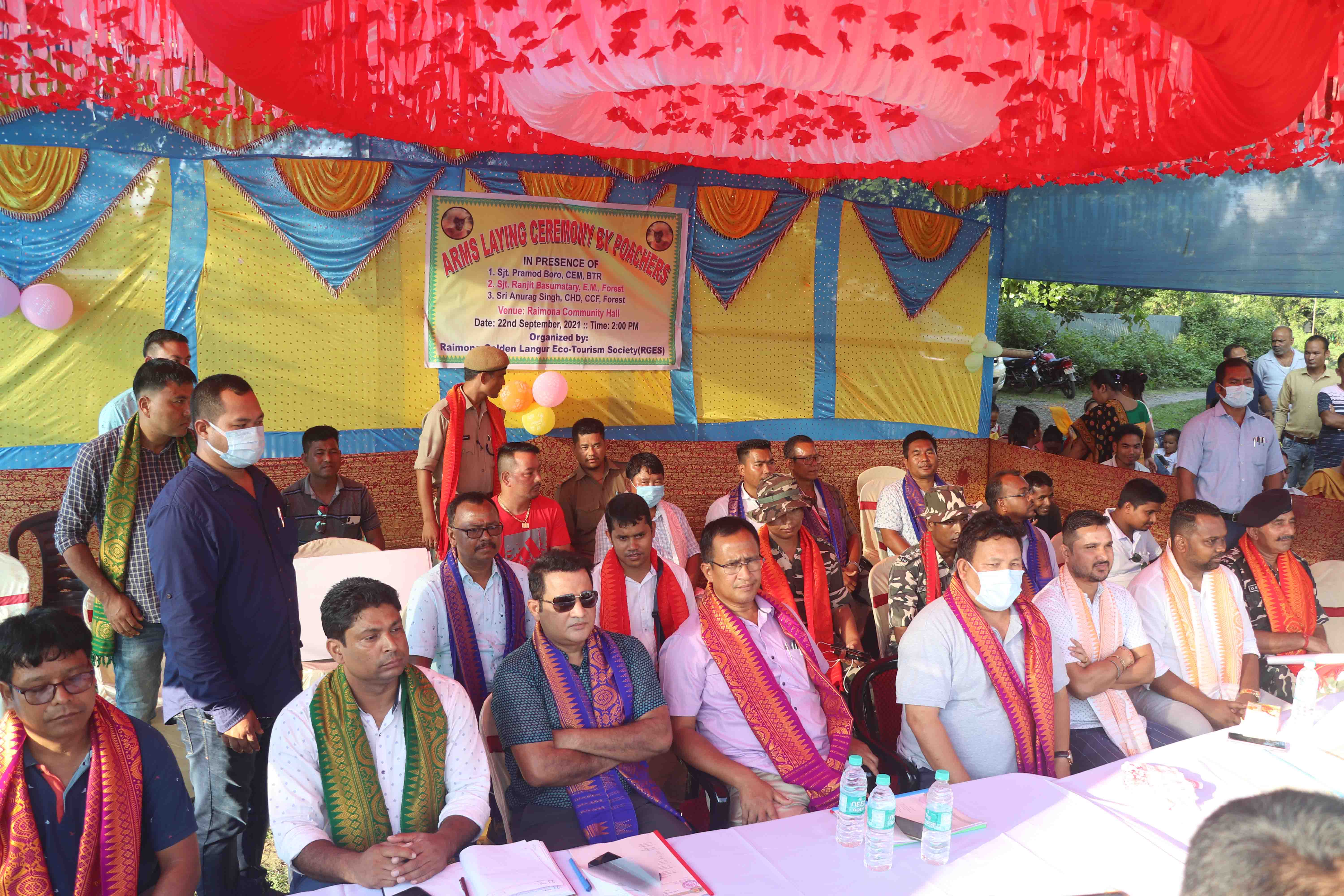 At a ceremonial event under the leadership of Mr. Ranjit Basumatary the Executive Member, Forests (Bodoland Territorial Council) in which the Chief Executive Member Mr Pramod Boro initiated the rehabilitation of the 57 poachers who surrendered 40 arms (Handmade gun), 11 antlers of Sambar, Spotted deer, Hog deer and 2 tusks.