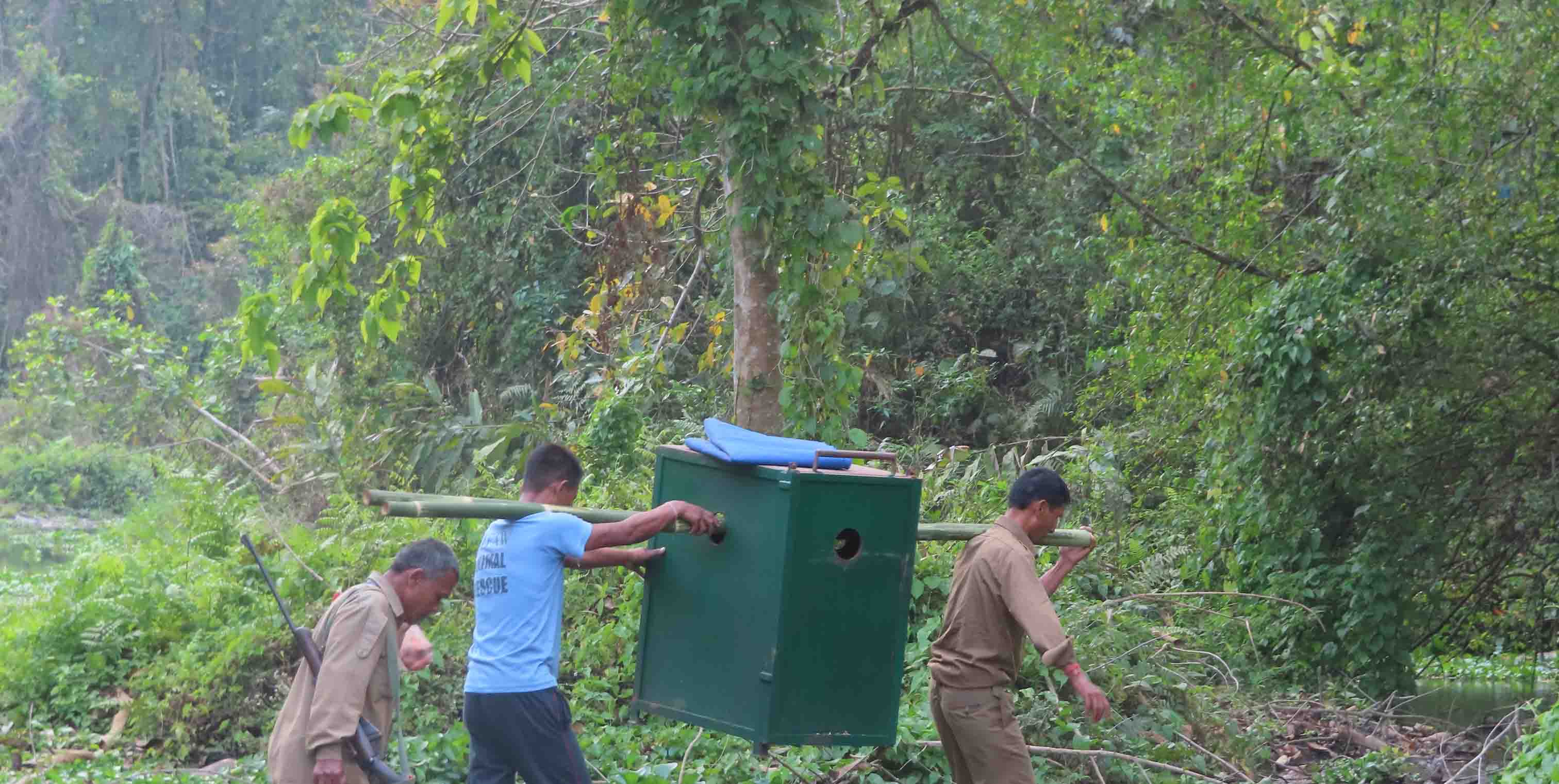 With the site selection for release being chosen, the cub was shifted to an anti-poaching camp of the Assam Forest Department at Kheroni inside Manas National Park. Another two months of acclimatization was deemed necessary prior to release back to the wild for which a specially constructed cage was built with a self-release gate.