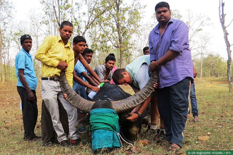 Udanti Wildlife Sanctuary, March 23, 2017: Working in collaboration with the Chhattisgarh Forest Department, Wildlife Trust of India’s Central India Wild Buffalo Conservation Project team successfully deployed satellite collars on two wild buffaloes (Bubalus arnee) and one gaur (Bos gaurus) this week.