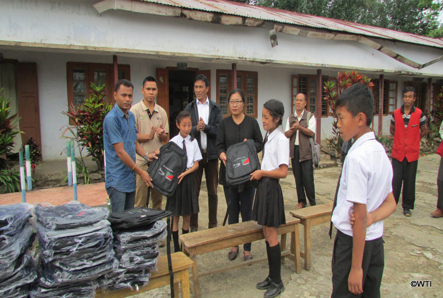On April 1, 2016, the students of two schools of village Pangti in the Sungro administrative circle of Wokha district, Nagaland received a special gift: new school bags.