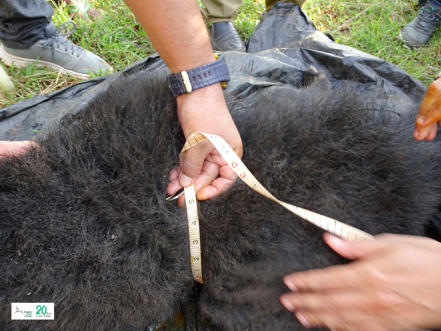 The wild boars in the area are known to destroy the paddy fields. So, locals of Balasore often set up snare traps to catch them and avoid any damage to the crop. Accidentally, a one-and-a-half-year-old bear cub got trapped in one such snare . Due to this, there was a huge crowd around the site where the cub was caught, and the local police managed the crowd with the help of Forest Department. The team tranquilised the young cub, treated her wound and gave medicines to support healing. She was then reunited with his mother the same night. Not only was this a successful rescue, but also a reunion of the cub with her mother. Such an exercise is a great instance of well-coordinated efforts of Forest Department, MVS, Hon. Wildlife Warden and local police.