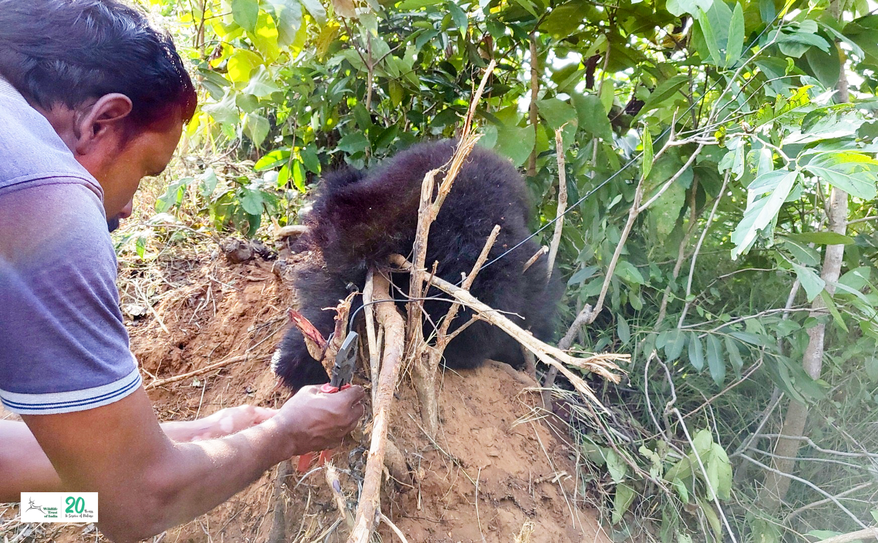 Sloth Bear Cub trapped in a snare, successfully rescued by WTI