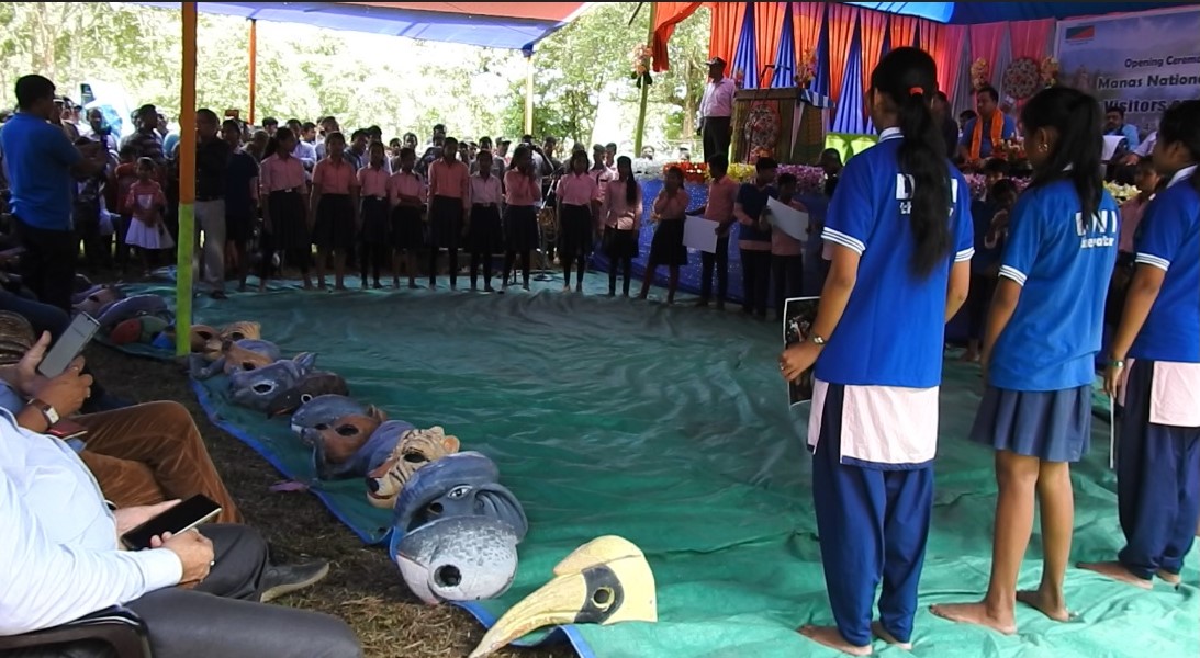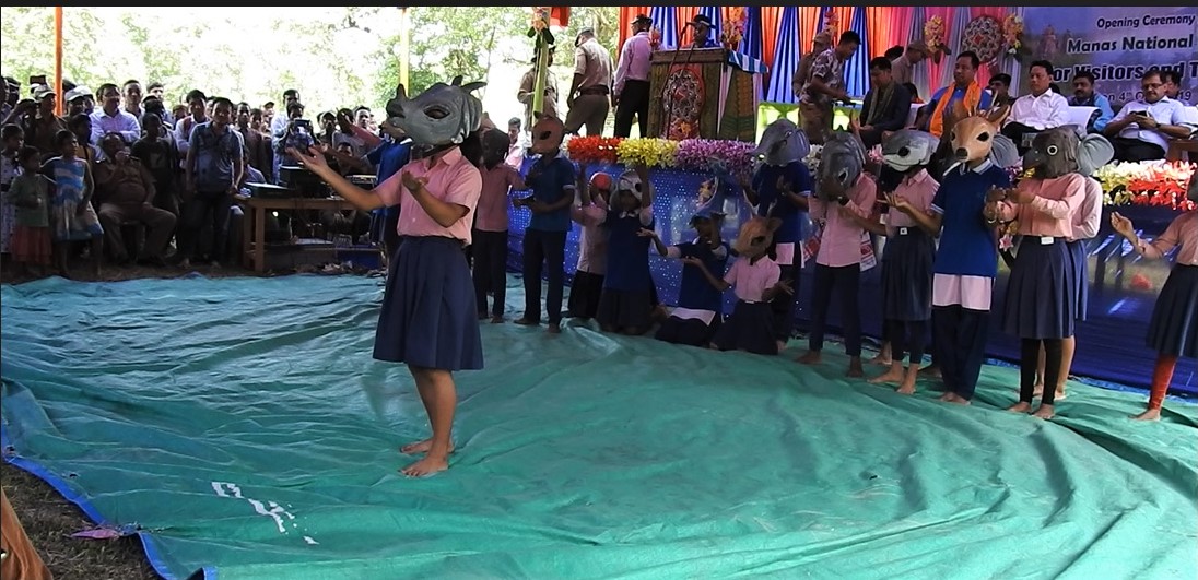Thirty-two school students and two teachers participated in the play to spread the message of importance of water in people’s lives and how Manas Tiger reserve that supports 22 streams and rivers has enhanced wildlife and the life of people living on its banks. The skit also carried a message on rampant use and disposal of single use plastic in and around Manas and urged the authority to ban plastic/polythene inside Manas and its fringes. All the students participating in the skit visited the park on the day of inauguration.