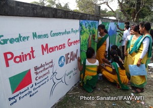 Rabanguri, Asssam, February 14, 2015: The International Fund for Animal Welfare-Wildlife Trust of India (IFAW-WTI) organised a day-long event ‘Paint Manas Green’ with students of three schools near Manas National Park of Baksa district. The students were asked to paint the boundary wall of Himgiri Bodo Medium High and M.E. School at Rabanguri, Assam, with images inspired from nature and wildlife.