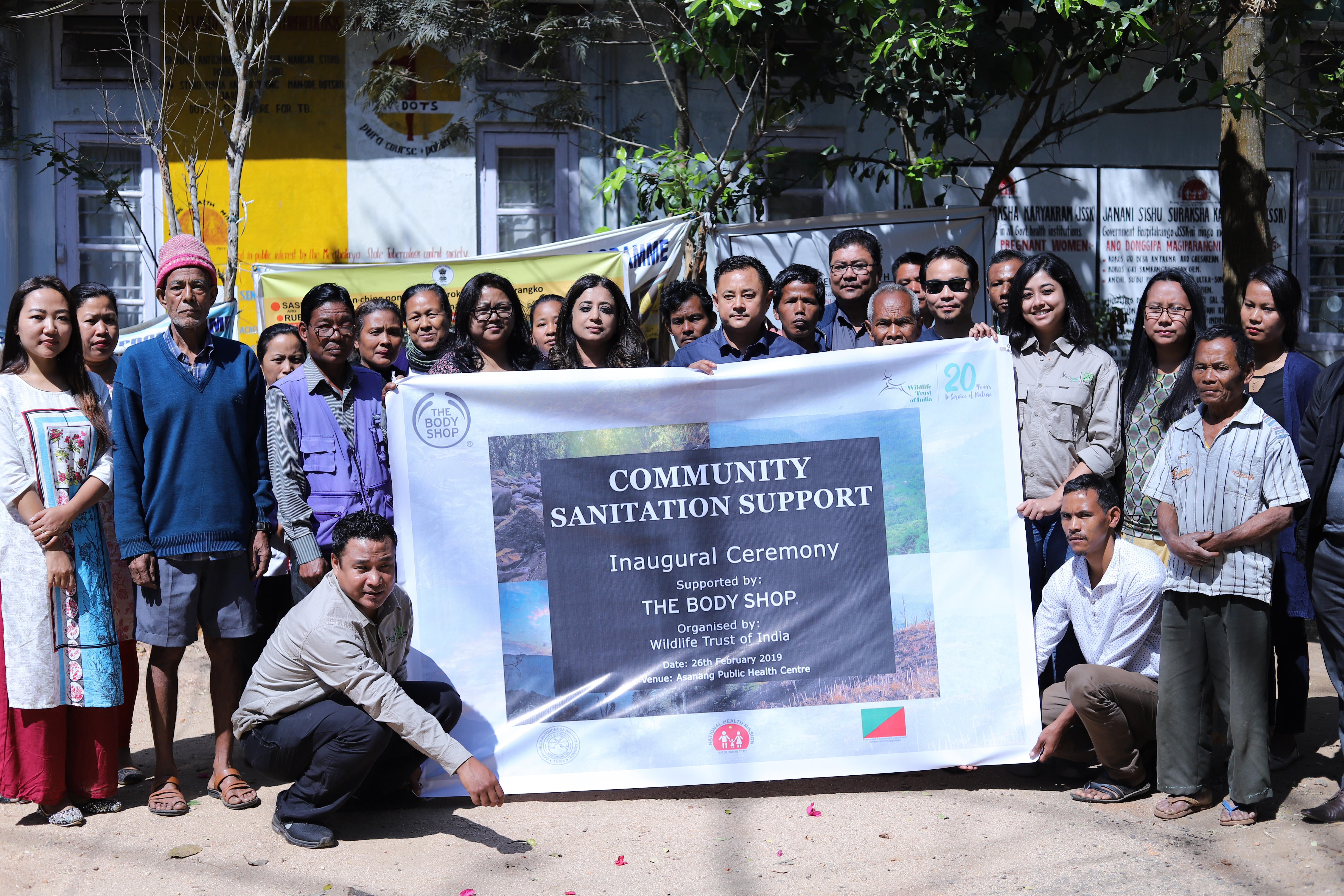 The absence of access to good healthcare and sanitation facilities in the remote villages of Garo Hills has been a concern for years now. As a result, there have been instances of serious health issues in the area. Few of the healthcare centres in the area were also primarily not well equipped. After equipping Siju and Baghmara (in South Garo Hills) health centres with modern healthcare equipment, in last year, Wildlife Trust of India and The Body Shop India have further extended their support to upgrade the Asanang Health Centre (in West Garo Hills) by construction of public sanitation facilities as a way of recognizing the efforts of the Garo Community who have been at the forefront of conservation in the region. The Inaugural Ceremony of the facility was organized at Asanang Public Health Centre in West Garo Hills, Meghalaya on 26th February 2019. Dignitaries included representatives from the Garo Hills Autonomous District Council (GHADC), Health Department, The Body Shop India, Wildlife Trust of India and local Garo community members.