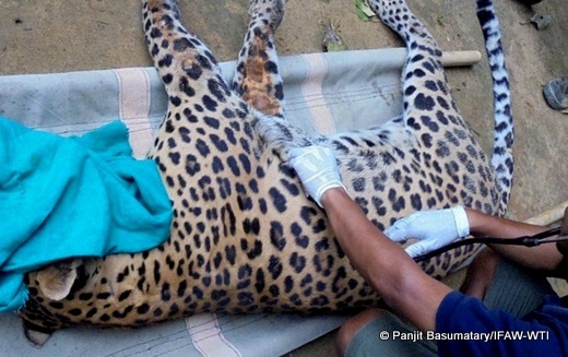 IFAW-WTI veterinarian conducting the health check-up of the leopard