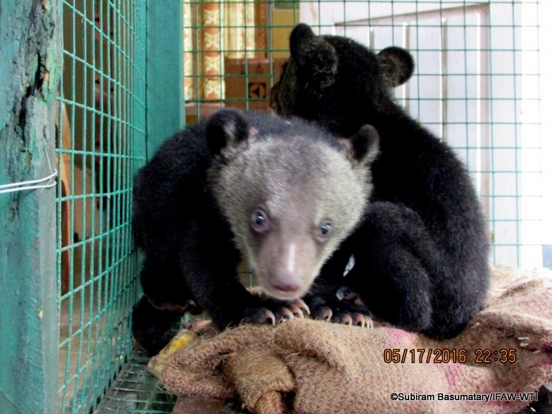 May 20, 2016: In the early hours of May 18, two Himalayan black bear cubs rescued by the Assam Forest Department were admitted to IFAW-WTI’s wildlife transit home at Charaikhola in the Kokrajhar district of Assam.