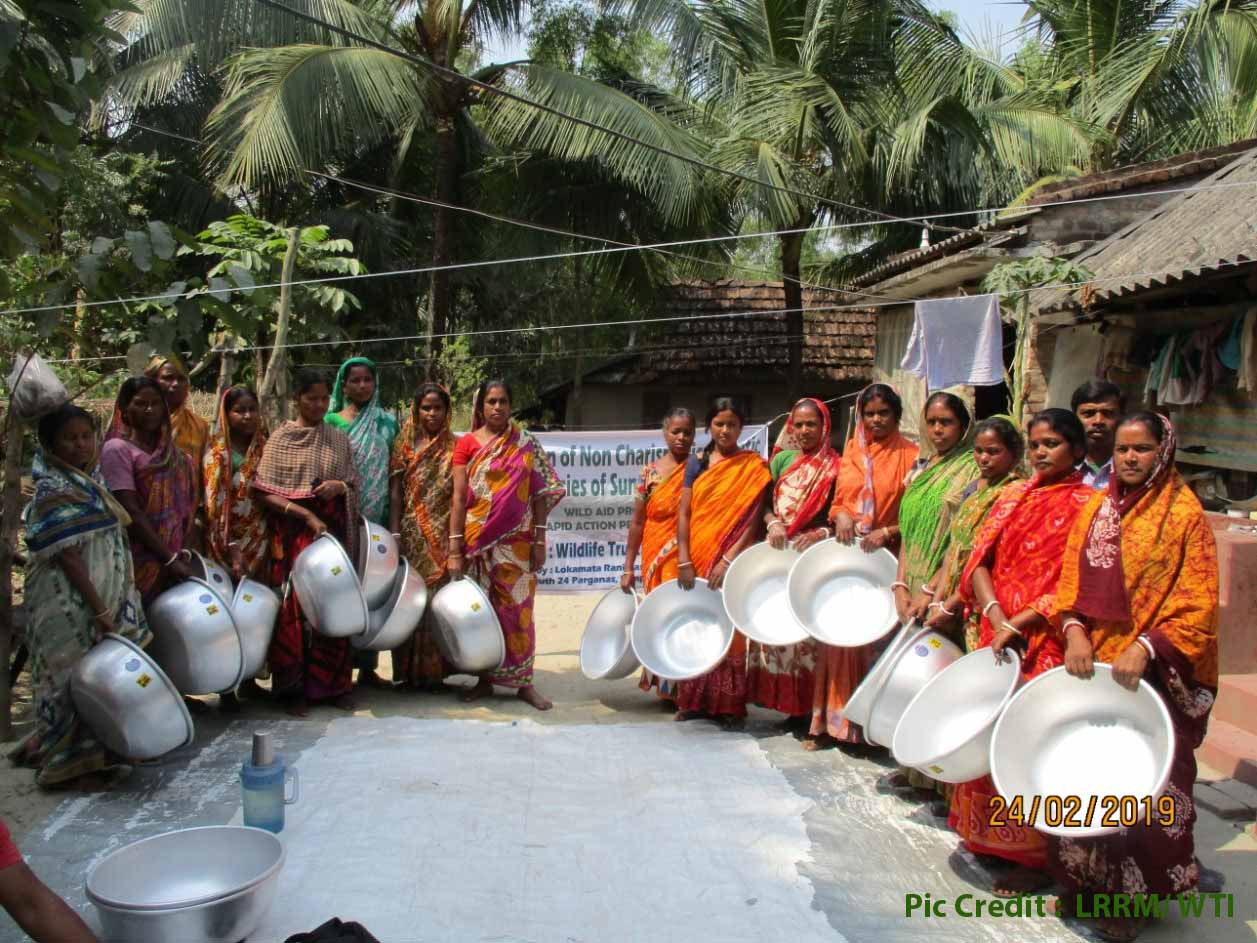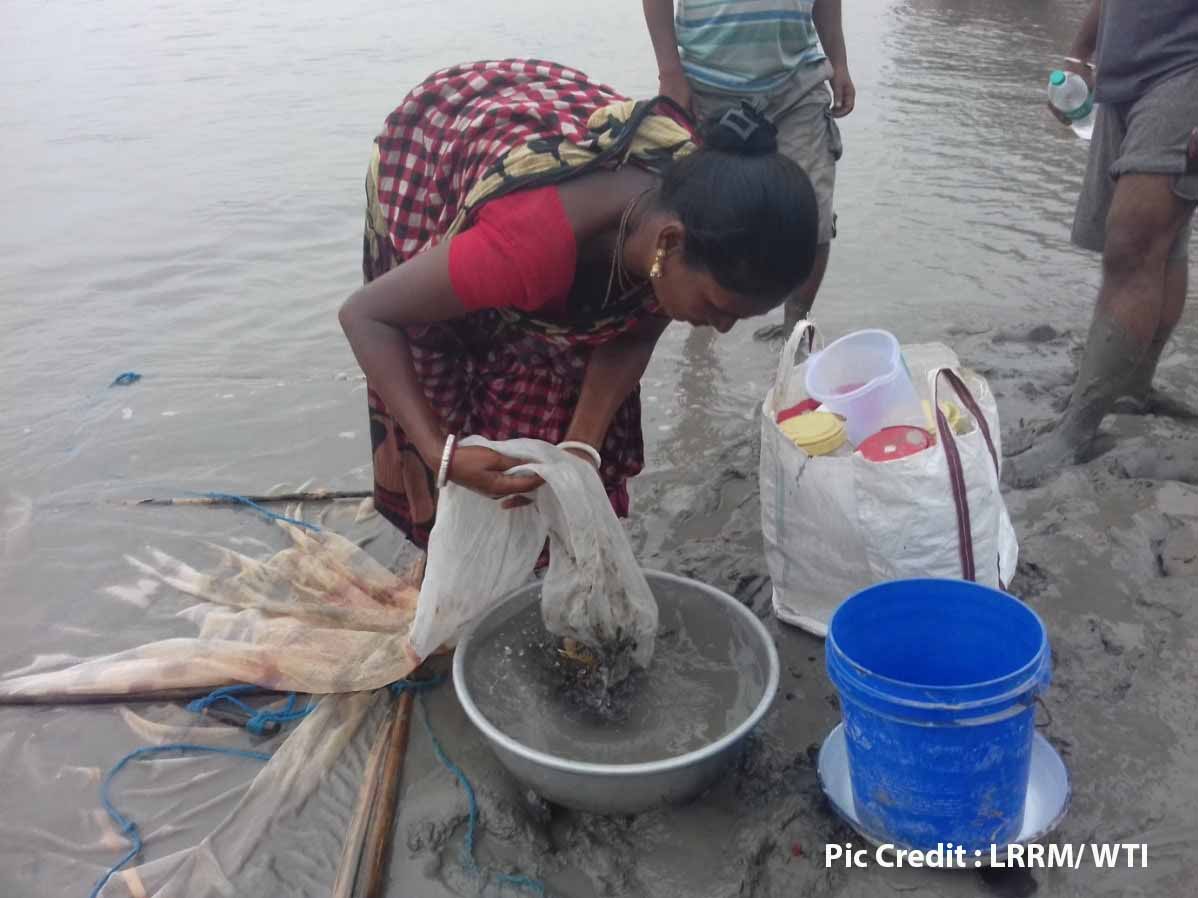 WTI’s Rapid Action Project (RAP) worked with Lokamata Rani Rashmoni Mission (LRRM), a local organisation engaged with the fishing community by conducting a series of consultative meetings in three islands Gosaba, Satjelia and Bali to motivate the prawn collectors to release the bycatch back into the waters.