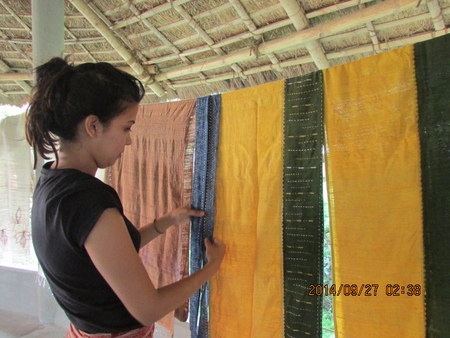 Samples created during this workshop were shared in an open house exhibition, where the women displayed two sets of Boro sarees with a fusion of local design and modern colors, table linen, cushions, naturally dyed garments and various ranges of travel accessories.