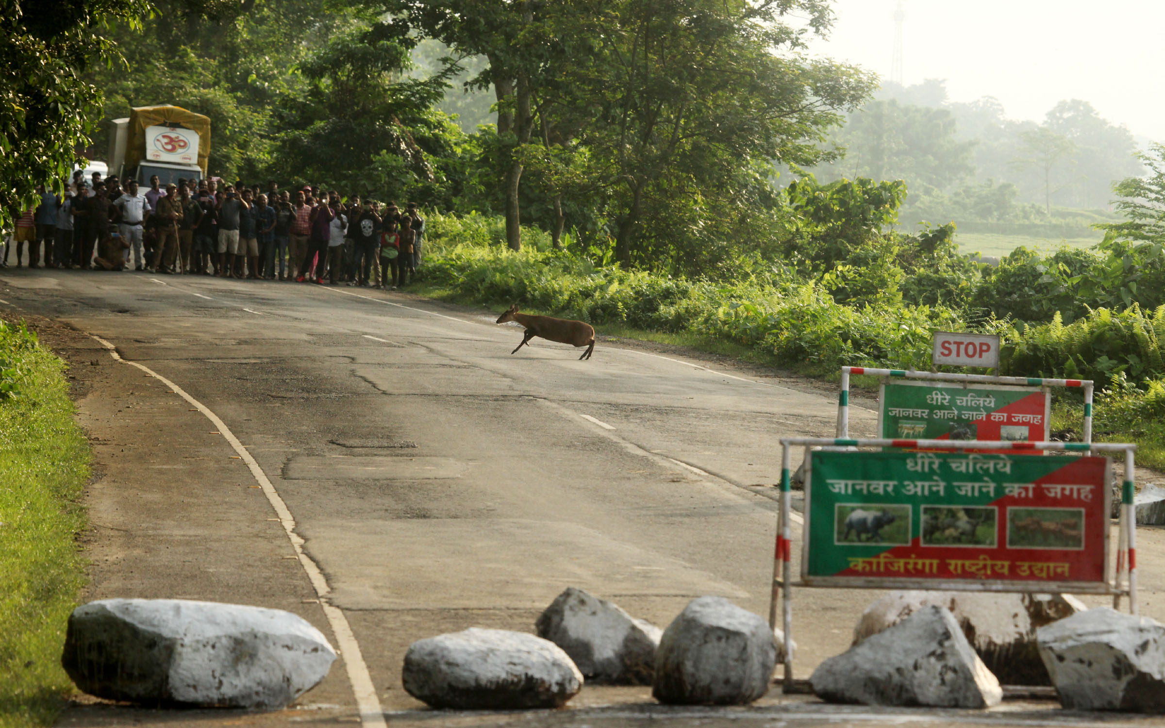 The River Brahmaputra floods the Kaziranga National Park every monsoon and while floods are necessary for the health of this unique ecosystem, they are detrimental to life in and around the park. As landscapes get inundated, people move to relief camps. Animals fleeing the floods need to cross the busy national highway to reach the hills of Karbi Anglong where they face life threats due to fast moving vehicles, opportunistic hunting by some locals or conflict situations when they end up in human habitation.