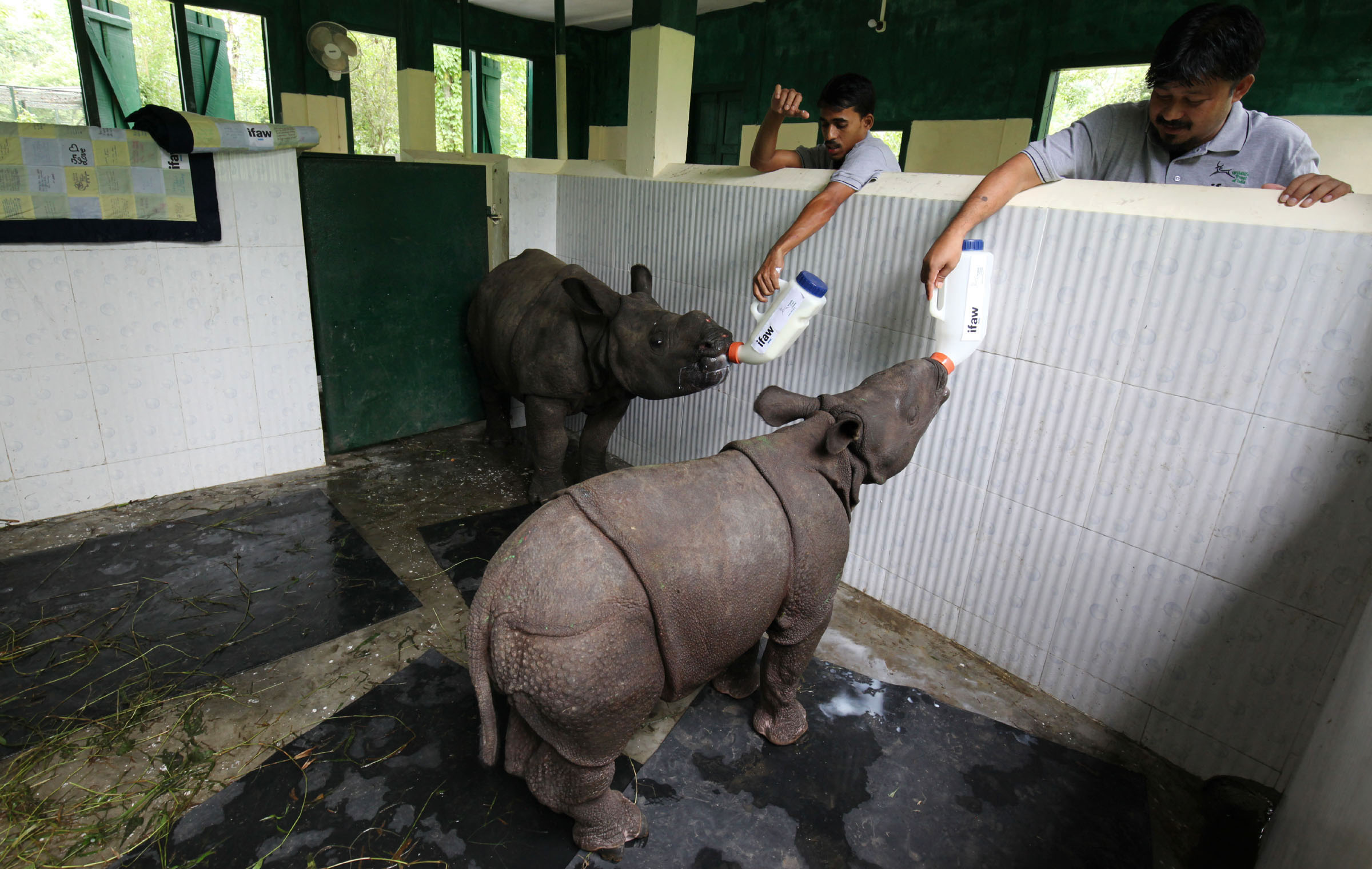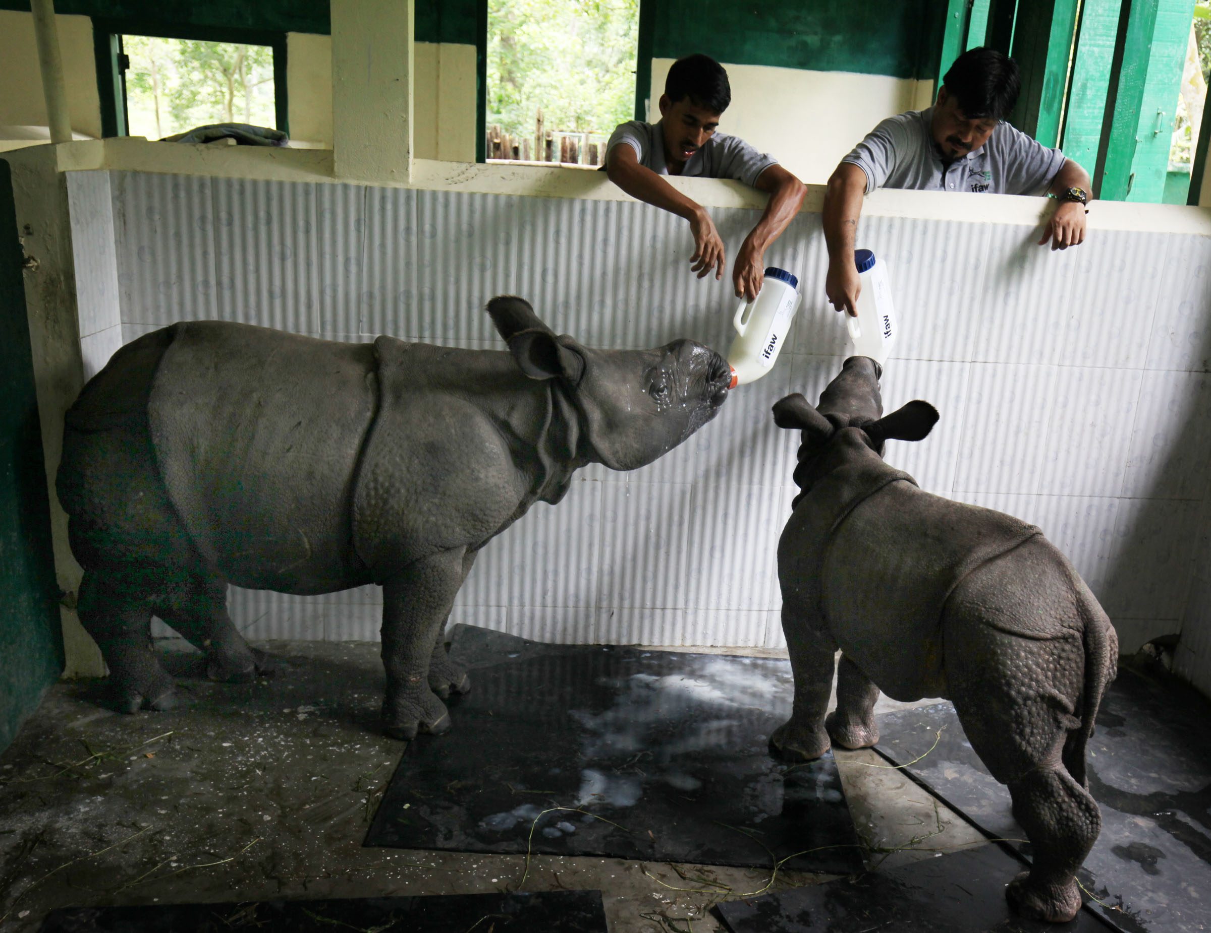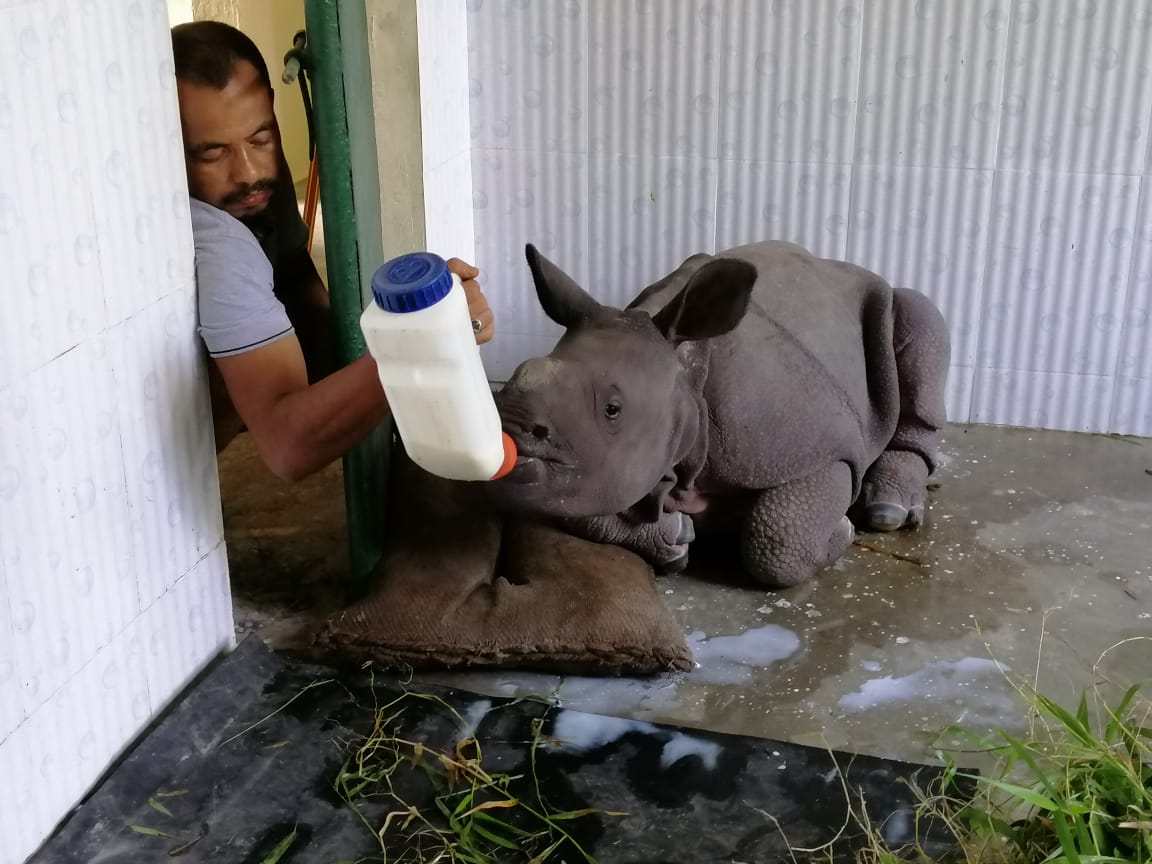 Kaziranga, August 23, 2019: Almost a month after the flood waters submerged 95 percent of Kaziranga National Park, the wildlife rescue centre we run near this UNESCO World Heritage Site has five new resident rhino calves. Rescued under various situations from swirling floodwaters or separated from their mothers, the rhino calves will be hand raised under set protocols at the Centre for Wildlife Rehabilitation and Conservation (CWRC) we run with Assam Forest Department (AFD) and IFAW, before they are found fit to be released back to the wild.