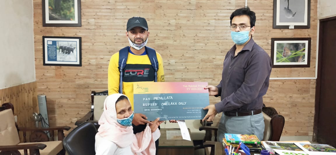 Ex gratia support was also given to Smt Premlata whose son Gaurav Kumar died due to an elephant attack while on patrolling duty at the Beriwada range, Rajaji National Park.