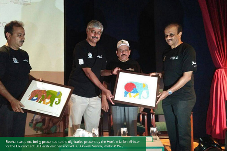 The Hon’ble Minister was joined on stage by WTI CEO Mr Vivek Menon and WTI Brand Ambassador Ms Dia Mirza; together, they unveiled an elephant-themed artwork, marking the formal launch of the Gaj Yatra.