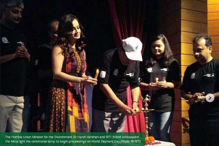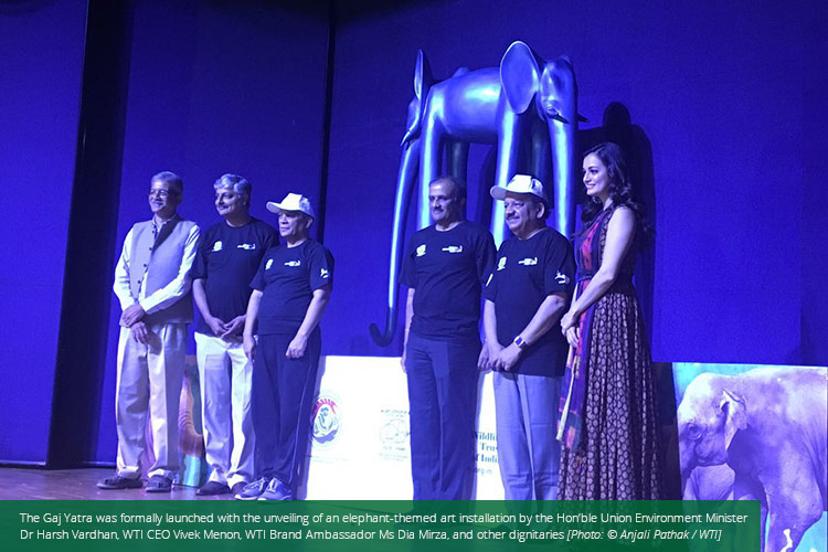 New Delhi, August 12, 2017: On the occasion of World Elephant Day, leading wildlife conservation NGO Wildlife Trust of India (WTI) has announced the launch of the Gaj Yatra, a campaign that aims to raise awareness about the shrinking space for India’s wild elephants and the importance of securing elephant corridors. The campaign was launched at the Nehru Memorial Library and Museum, Teen Murti Bhawan, New Delhi, by the Union Minister for Environment, Forest & Climate Change Dr Harsh Vardhan, WTI Executive Director & CEO Mr Vivek Menon, and actor, filmmaker, humanitarian and WTI Brand Ambassador Ms Dia Mirza this morning.