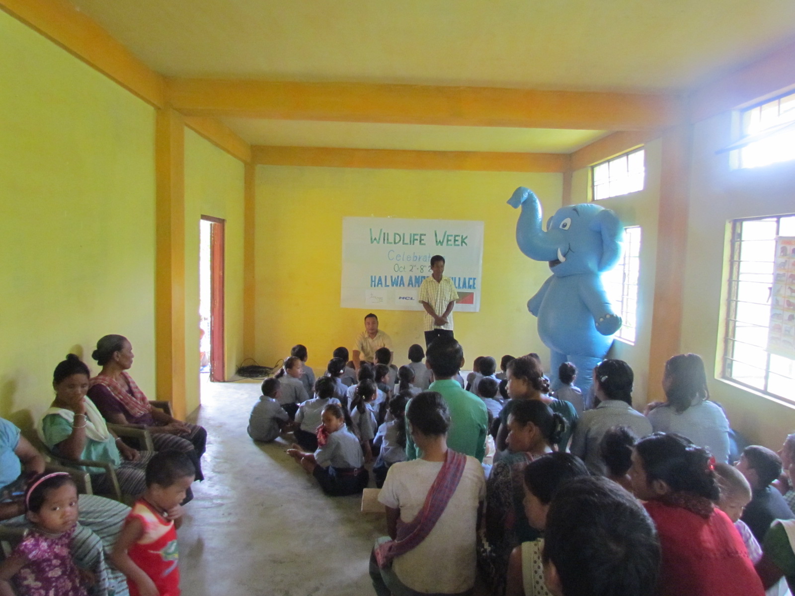 This year marked the first ever Wildlife Week celebration in Halwa Ambeng, a small village in South Garo Hills in Meghalaya. The village, with 29 households and approximate population of 200, lies just 15 km from the main town Baghmara in South Garo hills. The village lies in a crucial elephant corridor for elephants, and hosts a wide diversity of other animal species including hoolock gibbon, clouded leopard, great Hornbill and gecko to name a few. The celebration was conducted by Wildlife Trust of India (WTI)-HCL team in collaboration with the Garo Hills Autonomous District Council (GHADC) and the State Forest Department. Gittim Nokma (village head), Mr. Salbison, moved the villagers to protect, conserve and respect the wildlife to restore it to its past glory. He conveyed an emotional experience of how the once rich and flourishing biodiversity in the village has been reduced by the very people who should be protecting it.
