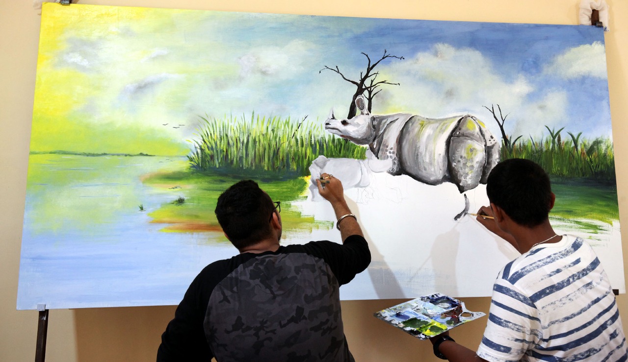 Meanwhile, young artists celebrated Wildlife Week 2019 with a daylong painting workshop at Kaziranga Discovery Park. Local artists from Kaziranga fringes and Bokakhat from Ayushkar Chitrakala Vidyalay and art teacher cum artist and students of Difflopathar ME & H School participated along with an independent artist as well in the painting workshop. The artists group created three paintings on the wildlife and habitat of Kaziranga landscape.