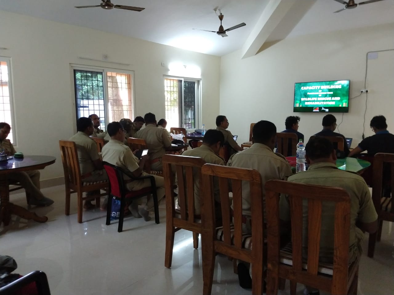 Before the actual commencement of the MVS operations in Keonjhar, it was decided that WTI will conduct a series of training programs for the range level forest department staff in a manner to constitute a primary level rescue team. To further discuss the modalities of the training and to draw up a training calendar, an inception meeting of all stakeholders was held in July. Following that an exposure visit of the Keonjhar Rescue team members to Similipal Tiger Reserve was also organized. Twenty-five rescue team members were taken to Jashipur, Similipal Tiger Reserve, where they interacted with the Divisional Level rescue teams of MVS-Similipal, the latter giving a basic overview of the training they went through and how it has helped them.