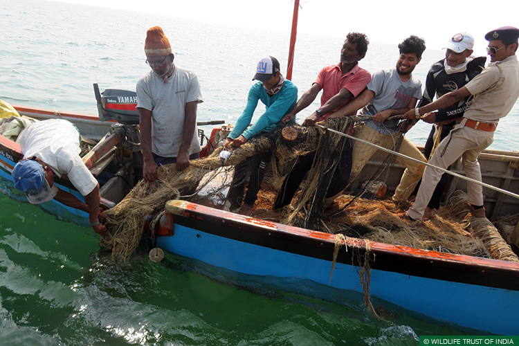 In keeping with the altered operating protocol initiated in December 2016, the WTI team networks with OBM (outboard motor) fishing boats to receive timely intimations of ongoing whale shark rescues. This change in protocol has borne fruit in the form of three successful whale shark taggings, one of which enabled WTI to track a female whale shark for over 200 days – first and longest whale shark migratory movement to be tracked from the Indian subcontinent.