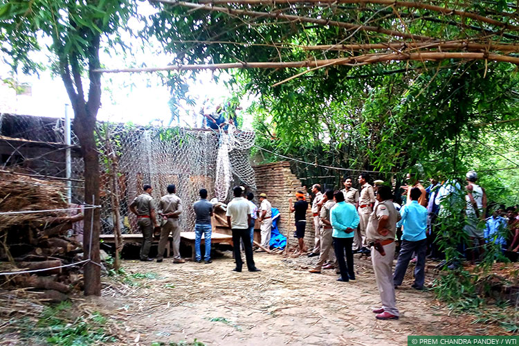 Having been contacted by the Divisional Forest Officer (DFO), Sultanpur, at around 11.00pm on May 28, WTI sociologist Prem Chandra Pandey and veterinarian Dr Aaron Wesly proceeded to Bhelara from their field station at Dudhwa Tiger Reserve. They reached the village at dawn.