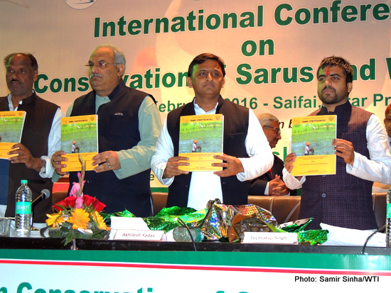 Saifai, February 2, 2016: On World Wetlands Day, Uttar Pradesh Chief Minister Shri Akhilesh Yadav released the ‘Crane Constituencies – Important Sarus Wetland Sites in the Agricultural Landscape of Eastern Uttar Pradesh’. The publication was unveiled by the Chief Minister at Saifai, Etawah, during first “International conference on the conservation of sarus and wetlands”, to be held in India from February 2 to 3. The conference saw the participation of delegates from six countries and 100 delegates from across India.