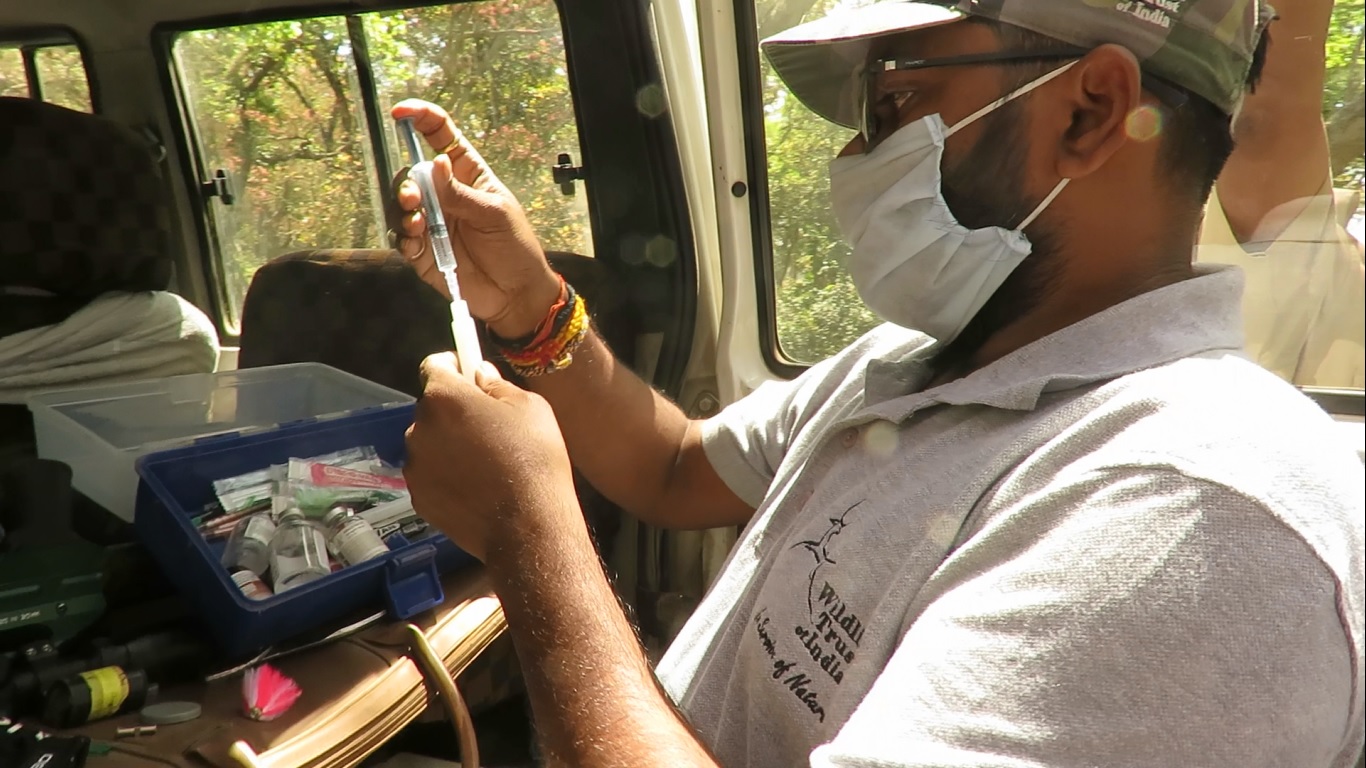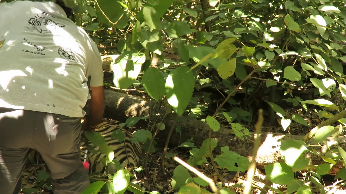 By 1:30PM, WTI’s veterinarian Dr Daksha Gangwar successfully sedated and tranquilized this healthy young adult which had already caused four human deaths in the village settlements bordering the tiger reserve.