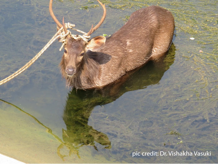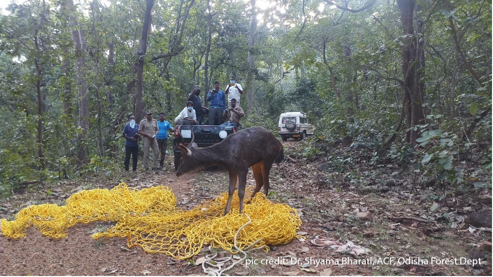 On 23rd November 2020, an adult male sambar stuck in a water canal near Bangriposi forest range, Baripada forest division was rescued by WTI’s Vet on Wheels Team.